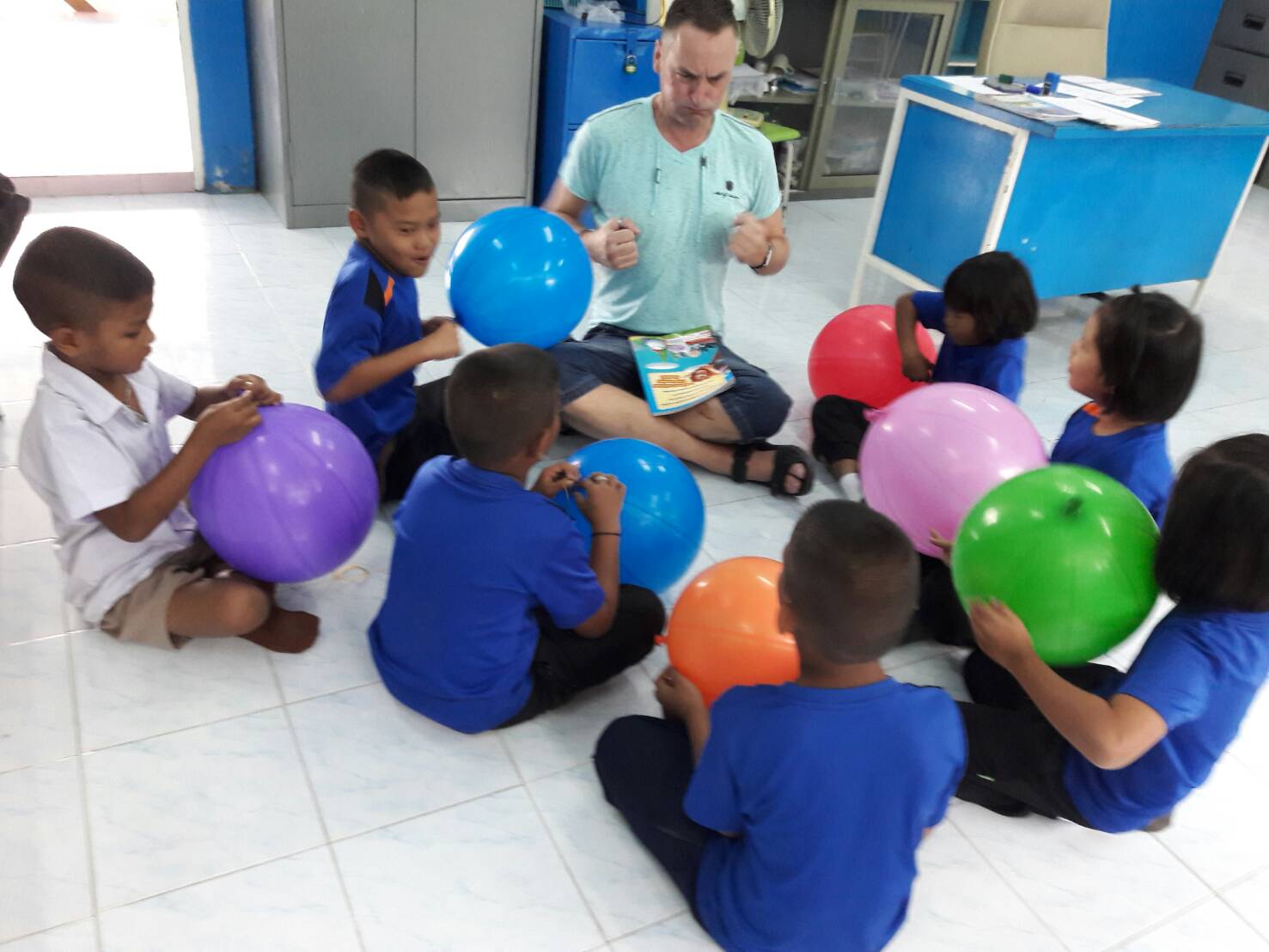 Het lesgeven an sich is een mooie uitdaging voor me in Thaise traditie. Niets is (goed) geregeld, maar dat is helemaal ok, men is dankbaar (en echt heeeeeeeel erg en oprecht) voor alles wat je doet.