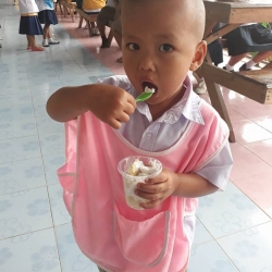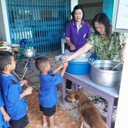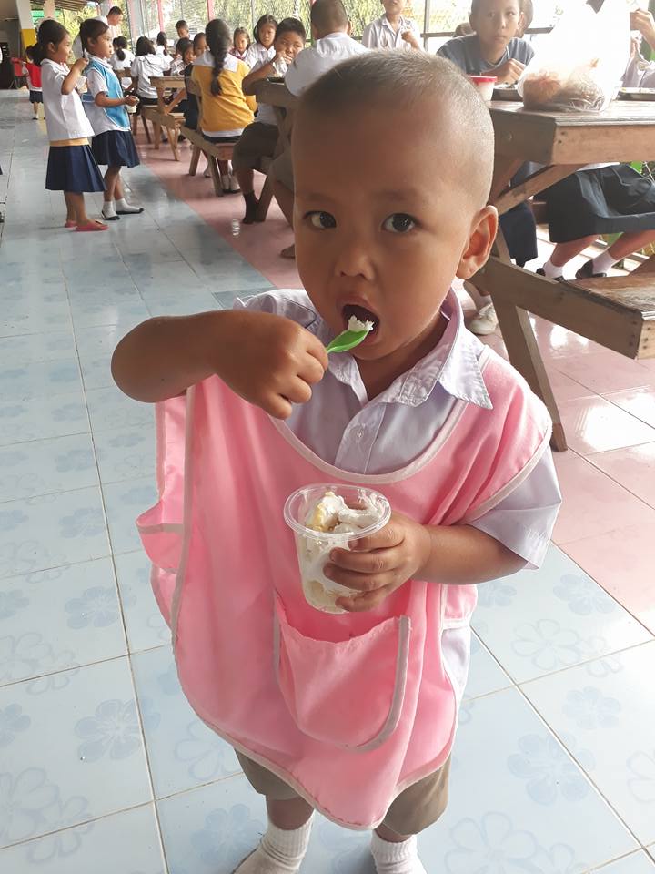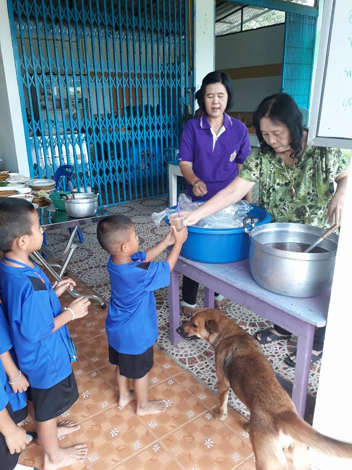 Lunch wordt dus ook betaald door de school en veel van giften. Afgelopen dagen al 2 maal meegemaakt dat een rijker iemand "gewoon" voor 64 kinderen eten maakt (en Thais eten is veeeeeeeeeel en lekker) en dat als gift geeft. Goed voor de kinderen en goed voor de karma van de gever.