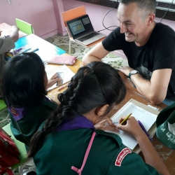 Een dag later was de takecarevolunteer terug en zou alles anders worden (no worries Denis). Maar ze moest nog inhalen, dus werd ik naar de hoogste class gestuurd 5/6 vergelijkbaar groep 7/8. Daar was gelukkig een docent bij die via Google Translate liet weten me natuuuuuuuuuuurlijk te zullen helpen. Wat inhield dat hij tegen de kinderen zei dat ik teacher Denis was en vervolgens zwaaide en wegliep...