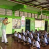 Vanmiddag was de vuurdoop bij een school een paar kilometer verderop, ook erg klein (minder dan 100 kinderen) en groep 3 t/m 6 hadden de eer. Het was duidelijk te merken dat deze kinderen nog nooit engelse les van een farang (zoals hier de niet-aziatische, blanke buitenlanders heten) hadden gehad.