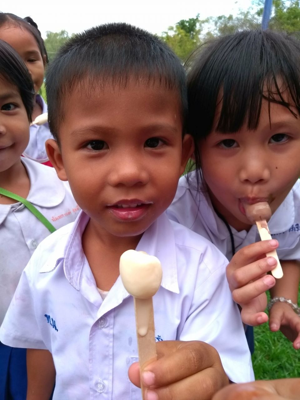 Ik had alle kinderen op een ijsje getrakteerd, maar dat werd ook meteen in een soort ritueel getrokken. Alle kinderen op de grond, dan 1 voor 1 dankjewel komen zeggen bij mij en de “grote” gever (ik dus) gaf ze dan een ijsje. Maar goed, ze genoten er geen seconde minder van ????