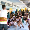 Daarna mocht ik snoep strooien, grote lol natuurlijk waarna het muzikale deel begon. Een paar nummertjes door de jongens van de oudste groepen. Opvallend was dat er 2 jongens rondom de zanger stonden die een soort mix van stoere en voor ons nichterige bewegingen maakten. Zo mooi om te zien dat in dit land er helemaal niet nagedacht wordt over wat dat zou zijn. Iedereen zit en gedraagt zich gewoon ergens tussen hetero en homo of a-sexueel in en dat doet er helemaal niet toe.