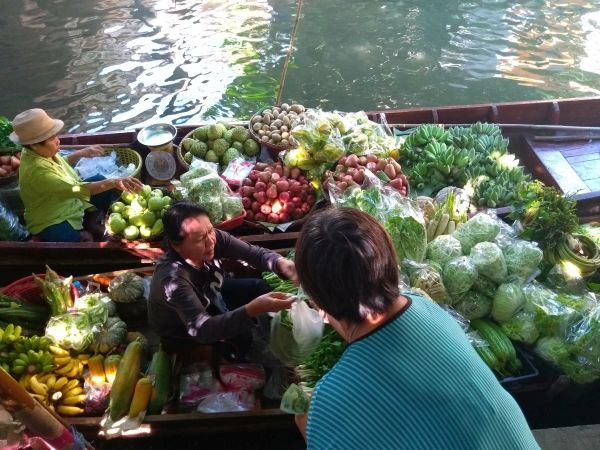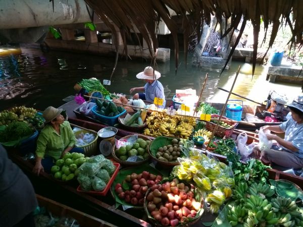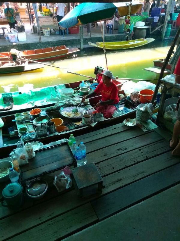 Vlakbij Bangkok nog naar een floatig market geweest. Echt prachtig om te zien en mee te maken. Vers van het land, rechtstreeks kopen uit de boot, erg leuk!